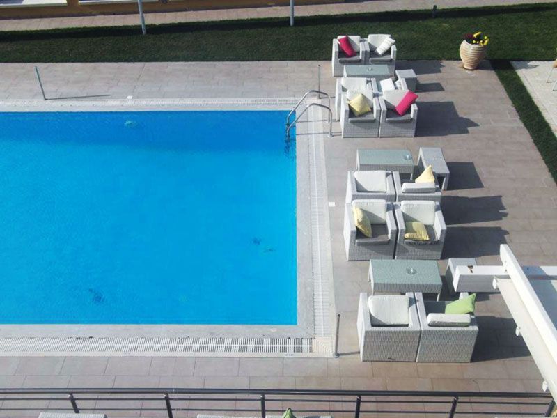 The outdoor area of the complex is perfectly designed and has a well-kept lawn. It also features a large swimming pool and pool bar, and a playground to keep kids happy. Inside the hotel, you will find a café with a beautiful view where you can sit and enjoy your coffee or drink, and in the winter months there is an impressive fireplace to keep you company.The luxurious apartments in the complex are fully equipped to provide everything you need for a wonderful, outstanding holiday.